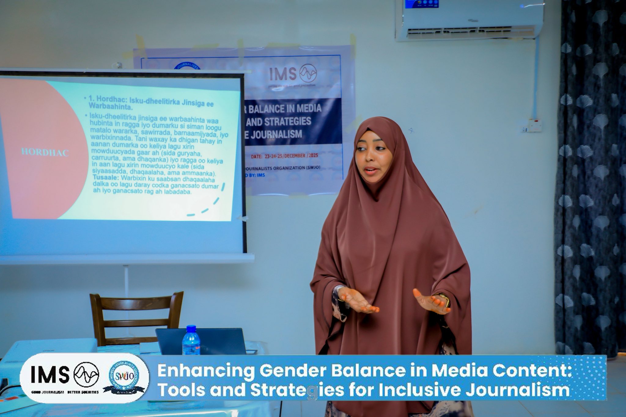 Iyada oo la kaashanaysa IMS ayaa daah-furtay daabacaaddii ugu dambaysay ee taxanaheennii heer qaran ee Kobcinta Isku-dheelitirka Genderka ee Mawduuca Warbaahinta, anagoo isu keenaya saxafiyiinta, soo-saareyaasha, tafatirayaasha iyo soo-jeediyeyaasha Puntland oo dhan.